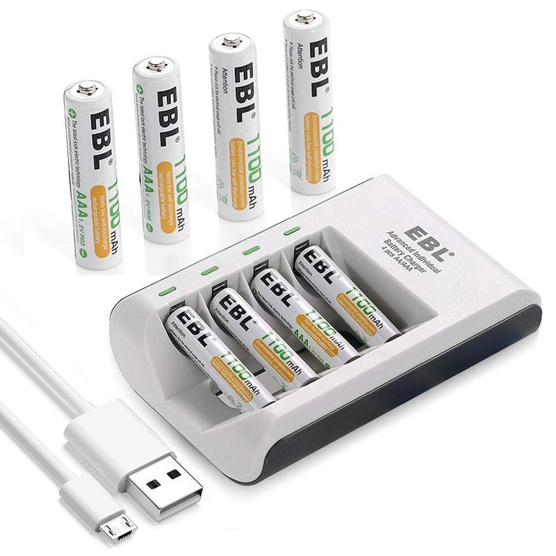 EBL AAA Rechargeable Batteries 1100 mAh (8 Packs) with Smart C807 Battery Charger and Micro USB Charging Cable