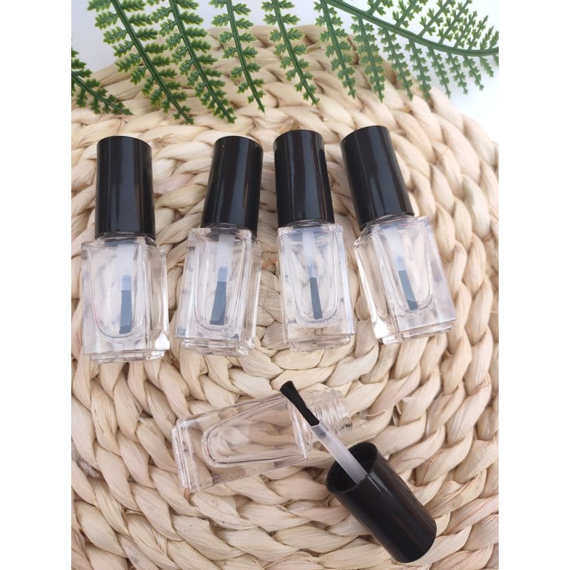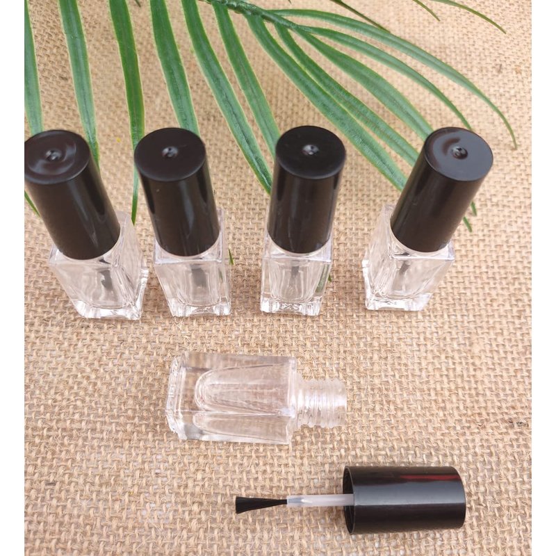 Ebonee 5ml Transparent Empty DIY Nail Polish Bottles Containers for Nail Art Sample, Clear Glass Square Refillable Nail Polish Bottles with Cap and Soft Brush (5 Pack)