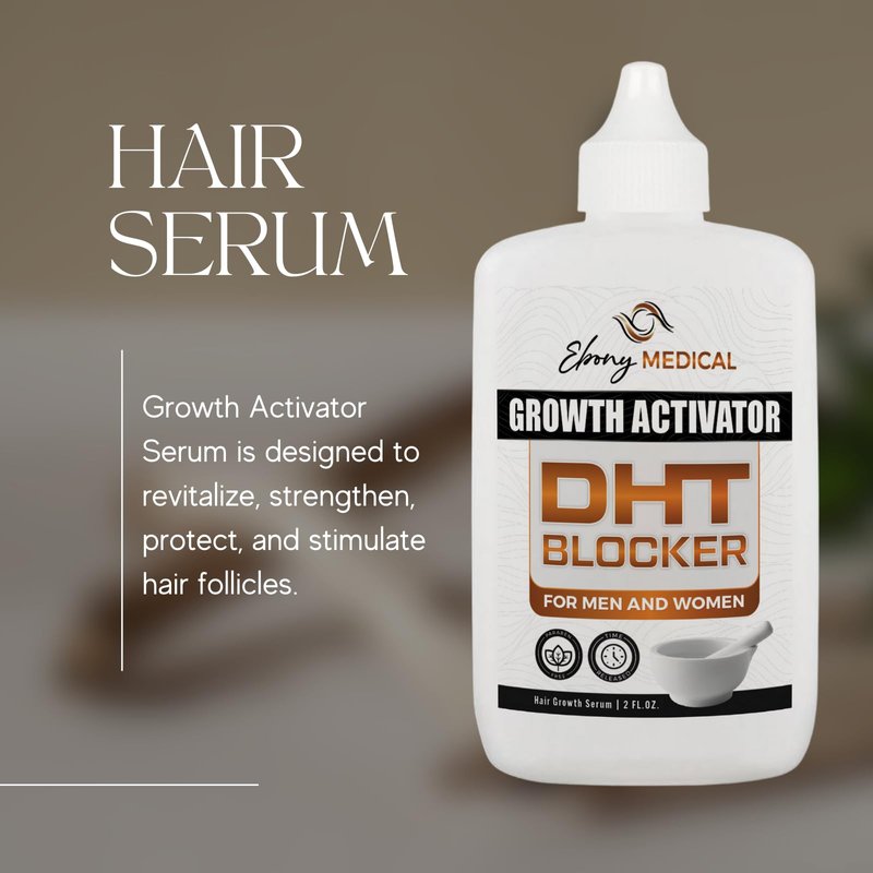 - Ebony Medicals Growth Activator - DHT Blocker targets the production of DHT (androgenetic alopecia). It promotes Hair Growth by providing vital nutrients including antioxidants