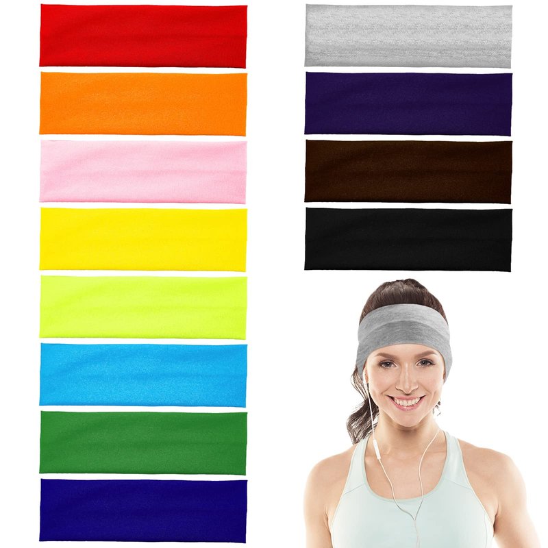eBoot 12 Pcs Stretch Elastic Yoga Headbands Mixed Colors for Teens, Girls and Women