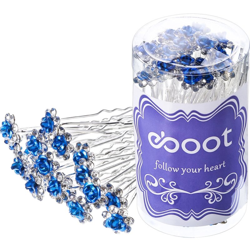 eBoot 40 Pack Crystal Hair Pins Rose Flower Rhinestone Hair Clips for Bridal Wedding Women Hair Jewelry Accessories, with Storage Bag (Blue)