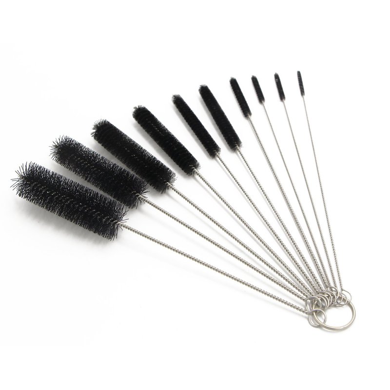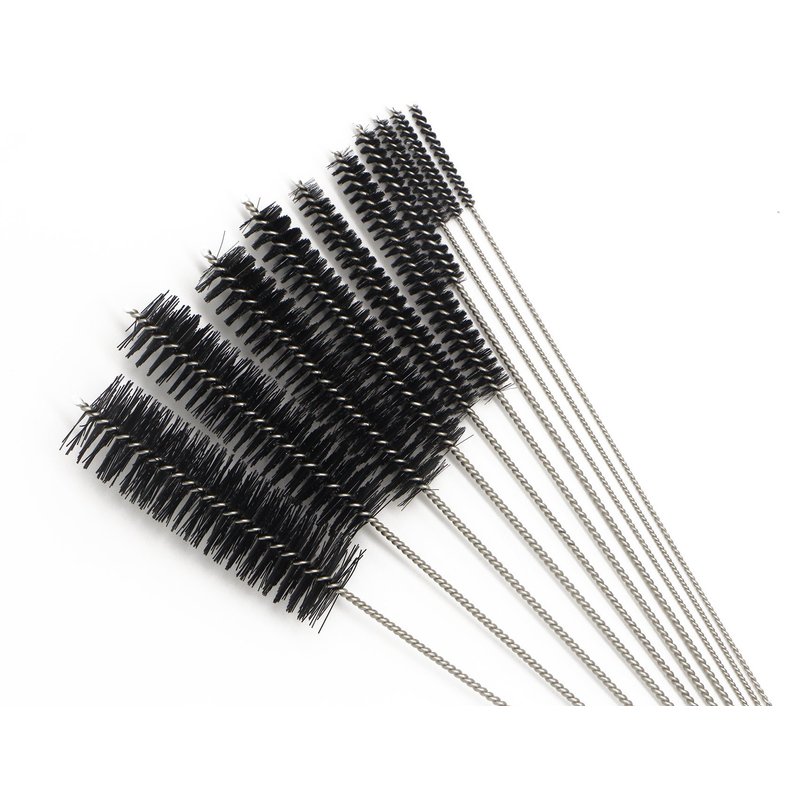 This set of brushes consist of twisted handle rod and nylon brush with the diameter of 2, 3, 4, 5, 6, 8, 12, 16, 20, and 24 mm (1/16, 1/9, 1/6, 1/5, 1/4, 1/3, 1/2, 2/3, 3/4, and 1 inches)