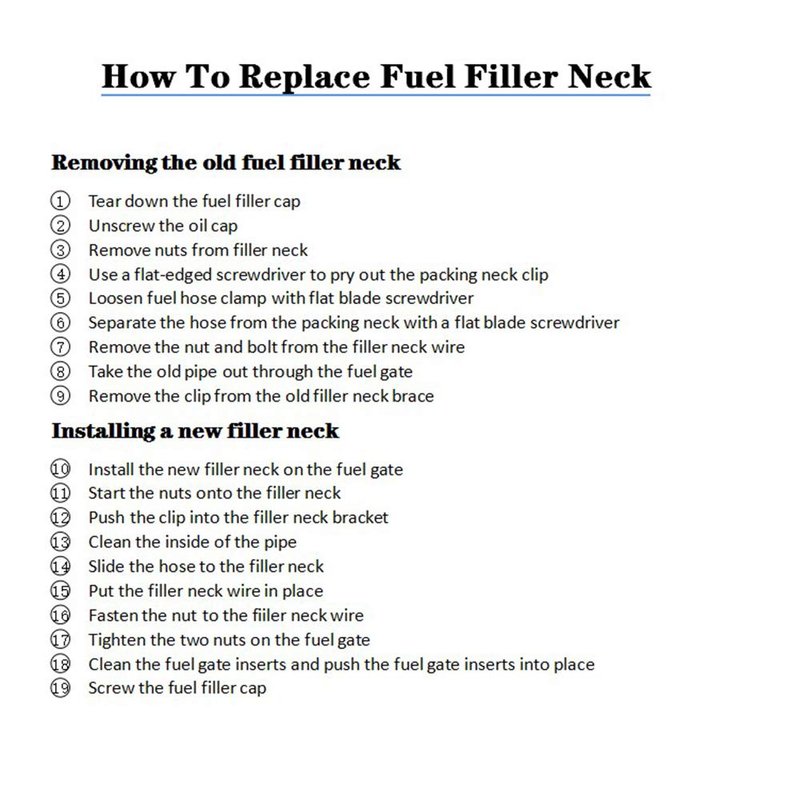 - REMINDER- Aging of the fuel filler neck will cause fuel leakage, fuel pump premature failure, fuel filler and injector blockage, wire damage etc,so replace a new pipe is very necessary