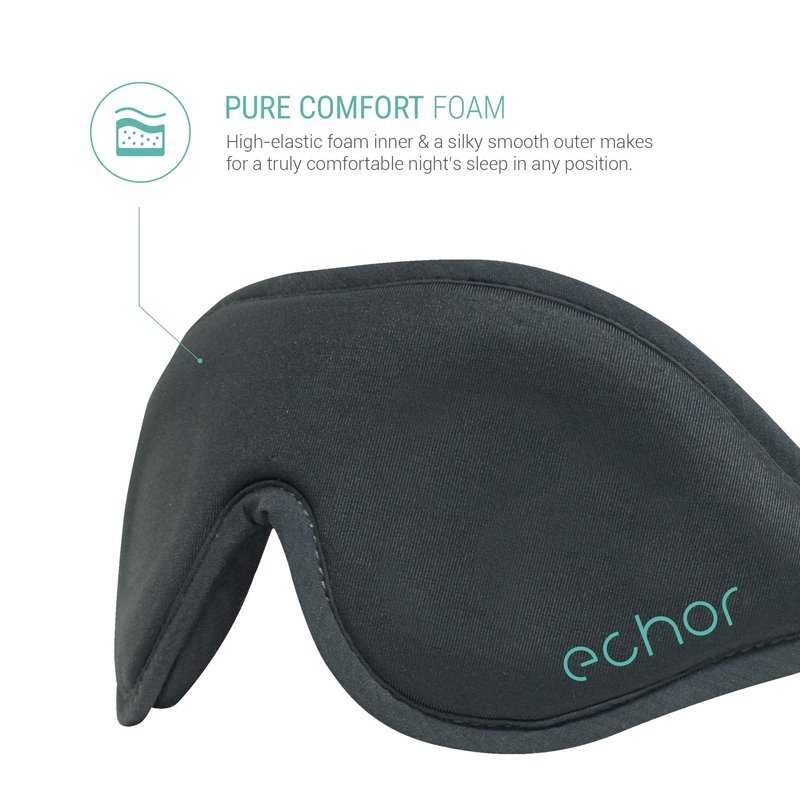 Does ambient light disrupt your sleep, whether at home or whilst travelling? An Echor Eye Mask for sleeping could be your saving grace. Darkness is one of the most important factors in good quality sleep; a regular light and dark cycle will let your circadian rhythm do it’s thing, telling your body when to sleep, and when to wake. Our Sleeping mask helps you take control over this process and control over your sleep. Our blackout Eye Mask has been designed with the wearer in mind. No more annoying light sneaking through next to your nose; our innovative nose wings close off this space, blocking more light whilst not interfering with breathing. Fed up with a worn-out Velcro strap coming undone mid-sleep, giving you a rude awakening? Our easy, fully adjustable system makes fitting the sleeping mask a breeze regardless of whether you like you eye mask to be secured tightly or loosely. The strap is so slimline it won’t be uncomfortable, no matter your sleeping position. Treated yourself to getting your eye lashes done and don’t want them squashed? Or simply don’t want the feeling of pressure on your eyes whilst drifting off? The Echor Sleeping Eye mask features ergonomic eye indentations, leaving your eyes feeling fresher after sleep. We only use the softest, most comfortable materials for our eye masks. Our PureComfort Foam inner creates a comforting resistance against your face to keep out maximum light, whilst the soft touch outer ensures a pleasurable feel against your skin. You can purchase an Echor Sleep Mask for sleep risk free due to our 30 Night Guarantee. If you aren’t happy with your eye mask you can return it for a full refund within 30 nights! We’re that confident in our products.