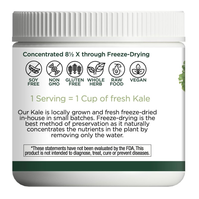 - ✅ USDA-certified organic Oregon-grown kale harvested at peak potency and fresh freeze-dried in-house.