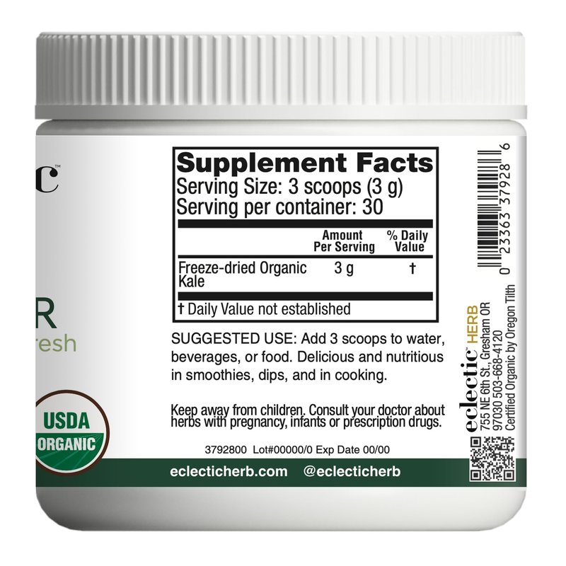 Eclectic herb Raw Fresh Freeze-Dried Kale Whole Food Powder | 3.2 oz (90 g)