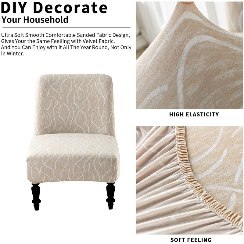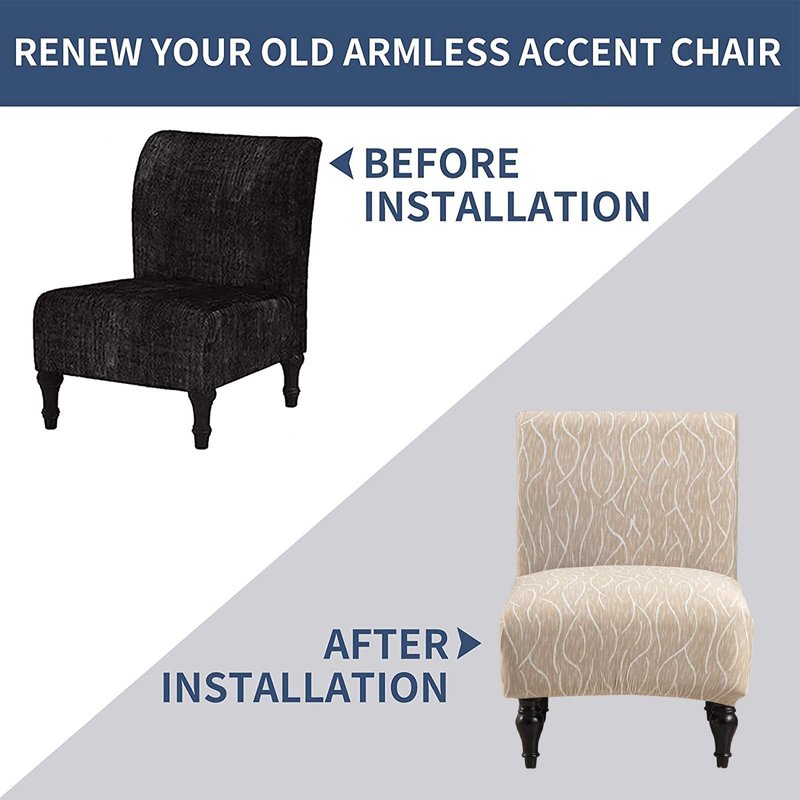- MULTIPLE CHOICES:Armless accent chair cover various patterns give your armless accent sipper chair for living room a new look.Note:Because the light and individually difference between different computer screen resolution,the modern slipper chair slipcover color showed in screen may slightly different from the actual one.If you encounter problems during the armless chair slipcover installation process,please feel free to contact us,we will send you the chair covers installation video.