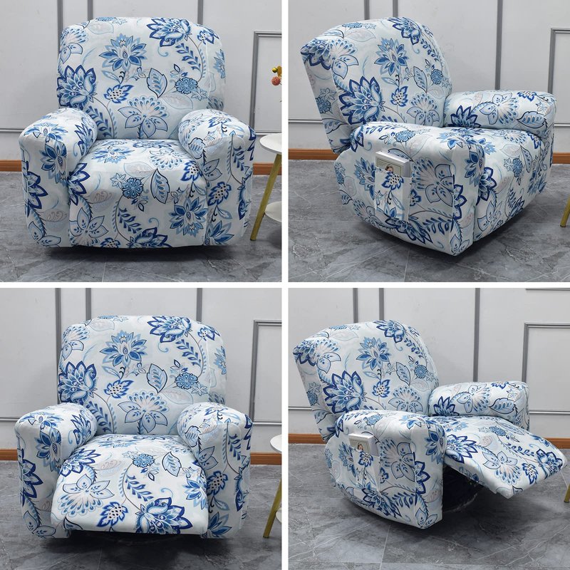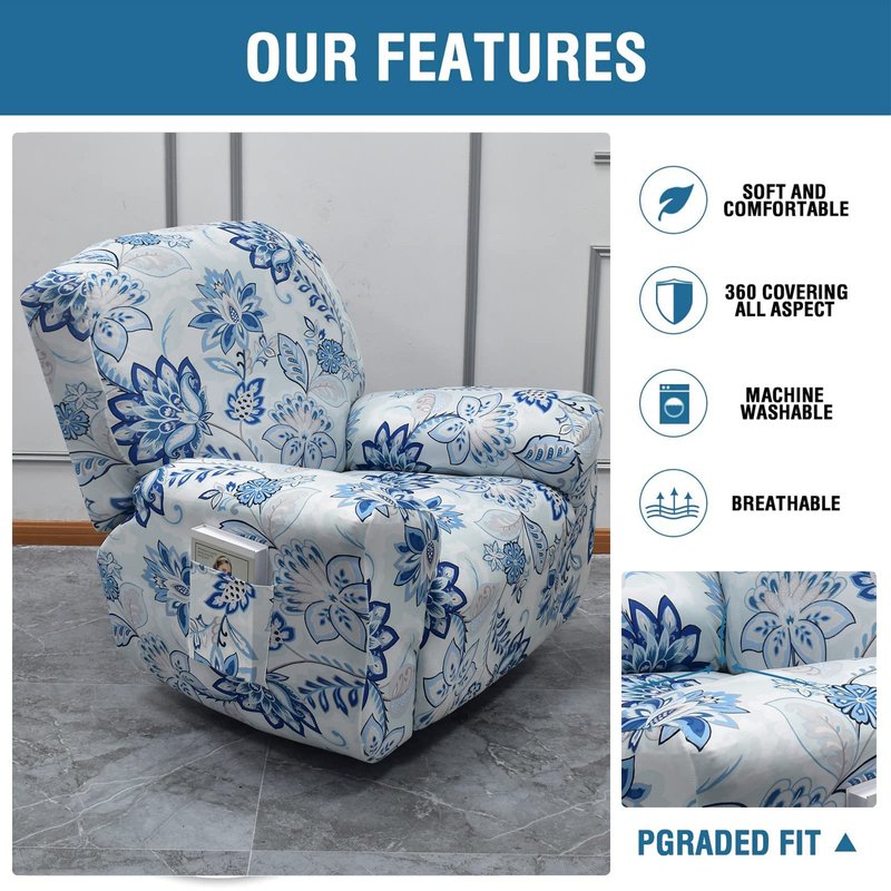 - Size:Suitable for 27-39" back width,40-50" height, 23-35" bottom width,30-40" side width, please refer to the measurement picture before purchase.his 4 pieces recliner chair cover is elastic enough to fit for most standard recliner chair couch.Separate 1 back cover,1 seat cover,2 arm covers with one side pocket,make the recliner slipcover fitted,wrinkle-free and look like customized.NOTE:Our chair cover has only one storage pocket,no hole for hand crank handle,please pay attention before buying.