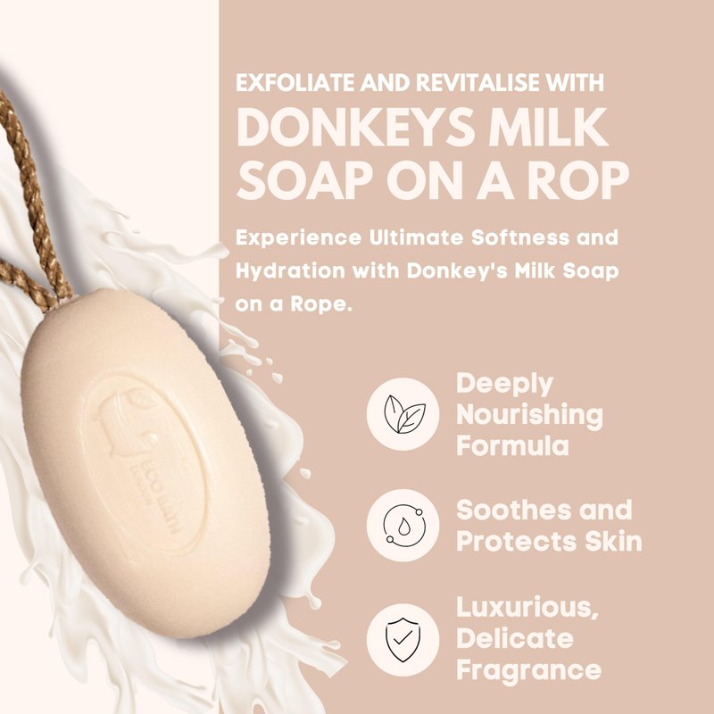 - LUXURIOUS DONKEY’S MILK: Enriched with the unique benefits of donkey’s milk, the Eco Bath Soap on a Rope provides a luxurious and soothing shower experience.