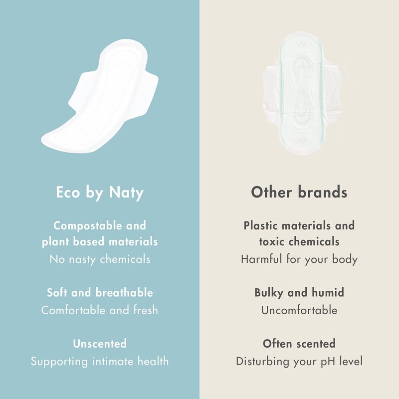 - PLANT BASED AND COMPOSTABLE: Naty’s Pads for sensitive bladders, as well as our whole range of feminine products, are made of 100% certified compostable and plant-based materials. Reduce your Footprint: Every woman disposes on average 200 kg waste from using femcare products. Using Naty your waste is 0 kg! Switch to certified compostable materials. What nature welcomes, your body will love!