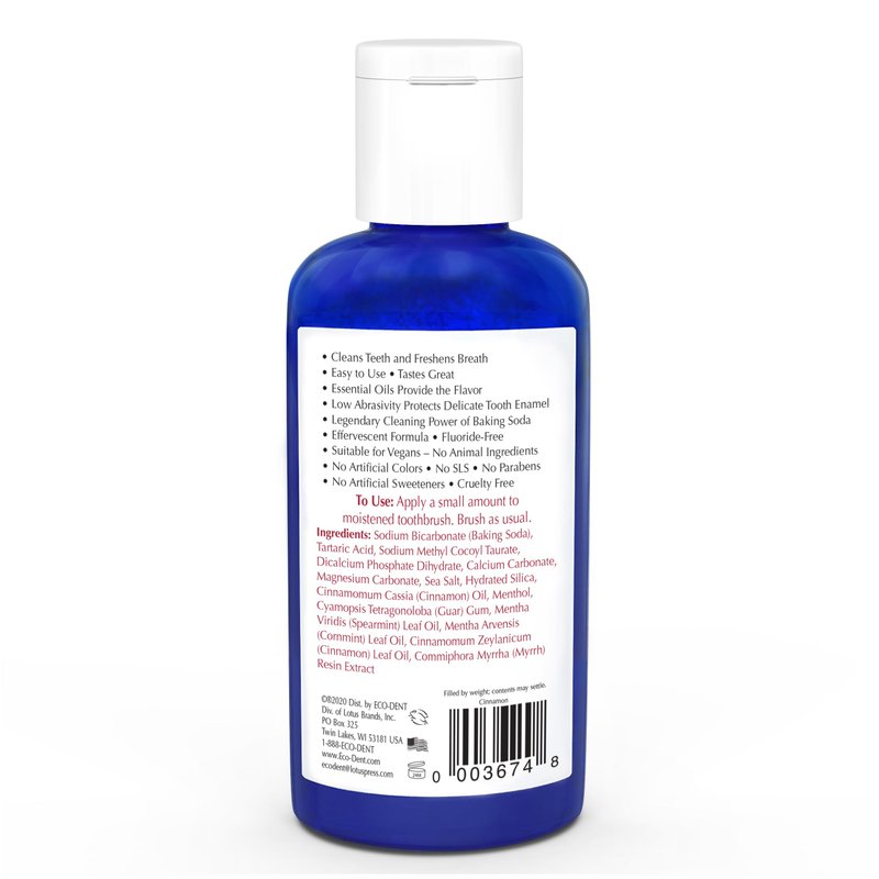 Eco-Dent DailyCare Baking Soda Toothpowder, Cinnamon - Fluoride-Free Toothpaste Powder, SLS-Free Tooth Powder with Baking Soda, Minerals, and Essential Oils, Toothpaste Alternative, 2 Oz