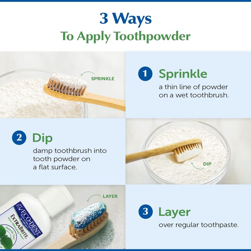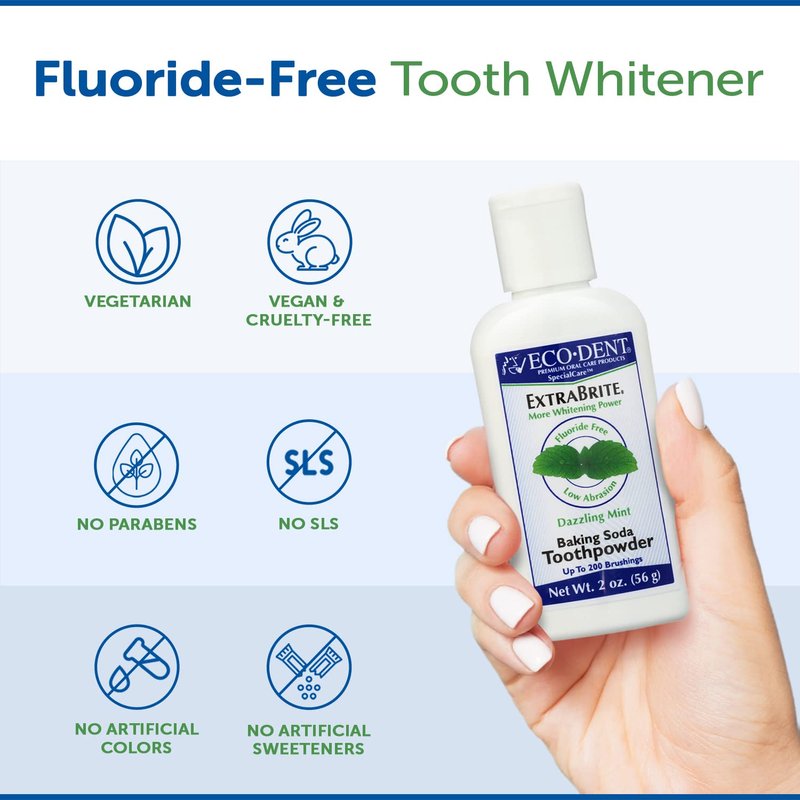 - A COMMITMENT TO ORAL CARE: Eco-Dent ExtraBrite Baking Soda Toothpowder is used and recommended by dentists.