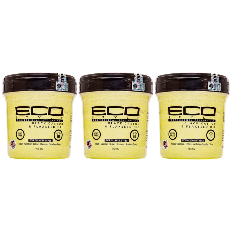Eco Style Black Castor & Flaxseed Oil Professional Styling Hair Gel, 16 oz (Pack of 3)