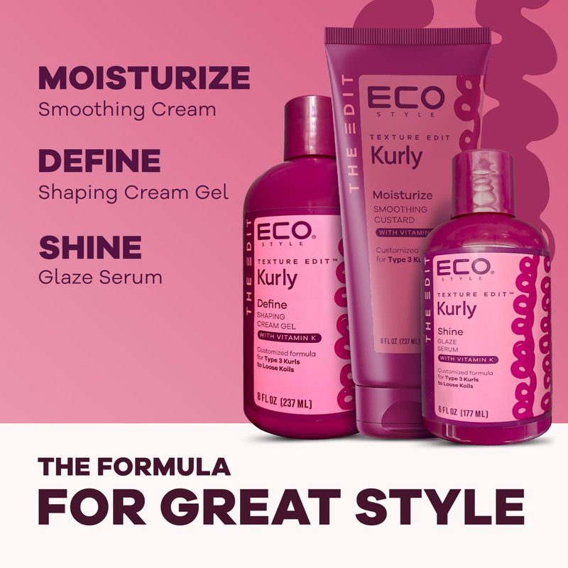 - ECO STYLE Texture Edit takes hair care for curly hair to the next level with vitamin K. It promotes scalp health, stimulates follicular revitalization and prevents hair loss.