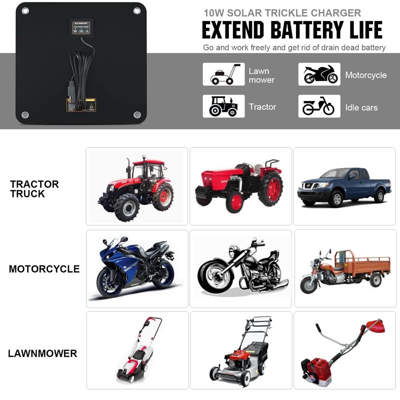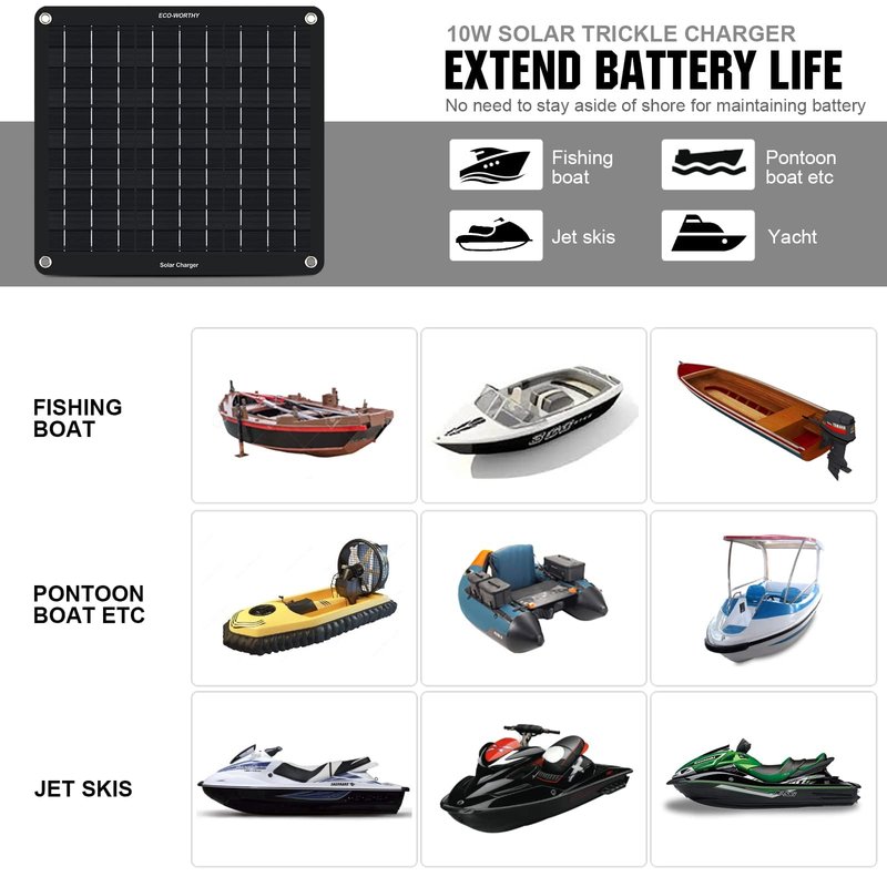 ECO-WORTHY 10W Solar Car Battery Charger Maintainer 12V Waterproof Solar Panel Portable Solar Trickle Charger for Car Truck Boat Lawn Mower RV Trailer Tractor ATV Utility Vehicle Battery