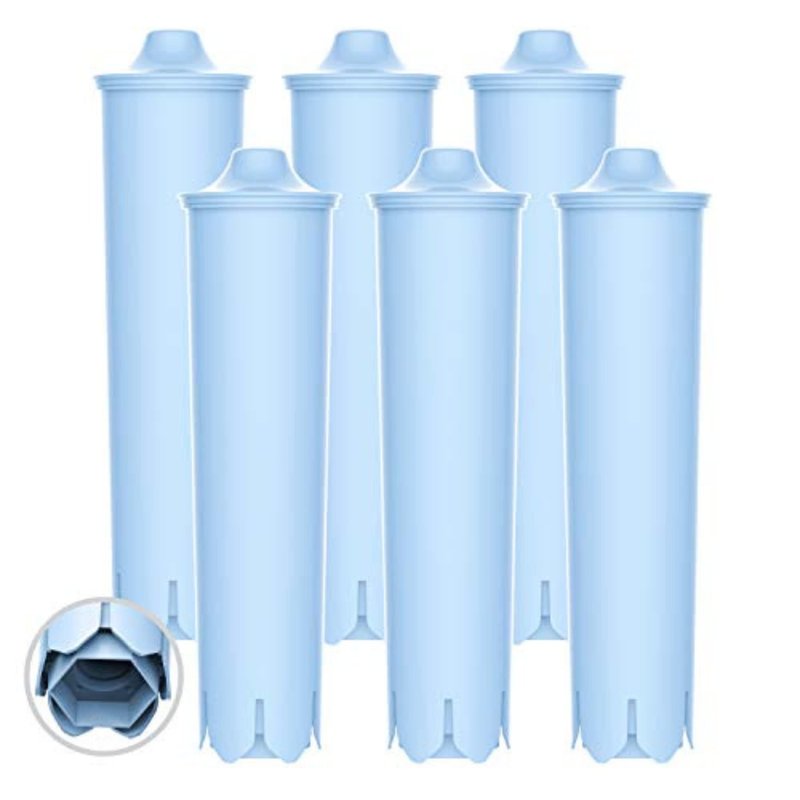 EcoAqua Replacement Filter, Replacement for Jura Clearyl/Claris Blue Capresso Clearyl Coffee Machine Water Filter, Pack of 6 Uses natural coconut granular activated carbon and ion exchange resin, which effectively reduces rust, chlorine, taste and odor and other contaminants. It can prevent limescale from building up to prolong the service life of your coffee machine. Adopts food-grade and BPA-free material to guarantee your safe use and bring you a better drinking experience without worry. Helps you enjoy fresh water by replacing your filter every two months or 40 gallons; whichever comes first will vary based on your water quality. The 40-gallon capacity can meet your water needs for a long time. Compatible models: Jura-Capresso IMPRESSA C5, C60, C65, C9, J6, J9, Z7, Z9.:Our service team provides you with a risk-free shopping experience. You can contact us directly if there is any issue about our products during the whole service time of our filters. We will provide a comprehensive service to ensure a satisfying shopping experience.