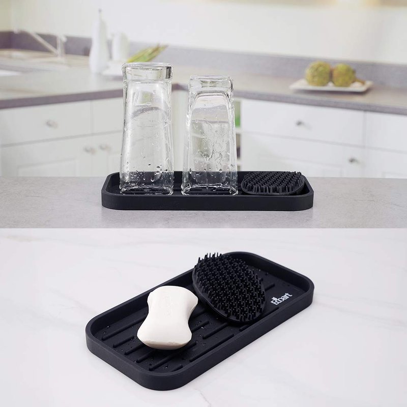 - 1.ECOART Silicone Sponge Holder Tray is a multipurpose use organizer.It can gather the sponges, soap, soap dispenser, scrubber,towel and cups in the kitchen or bathroom, keep your house clean and tidy!