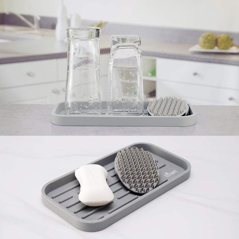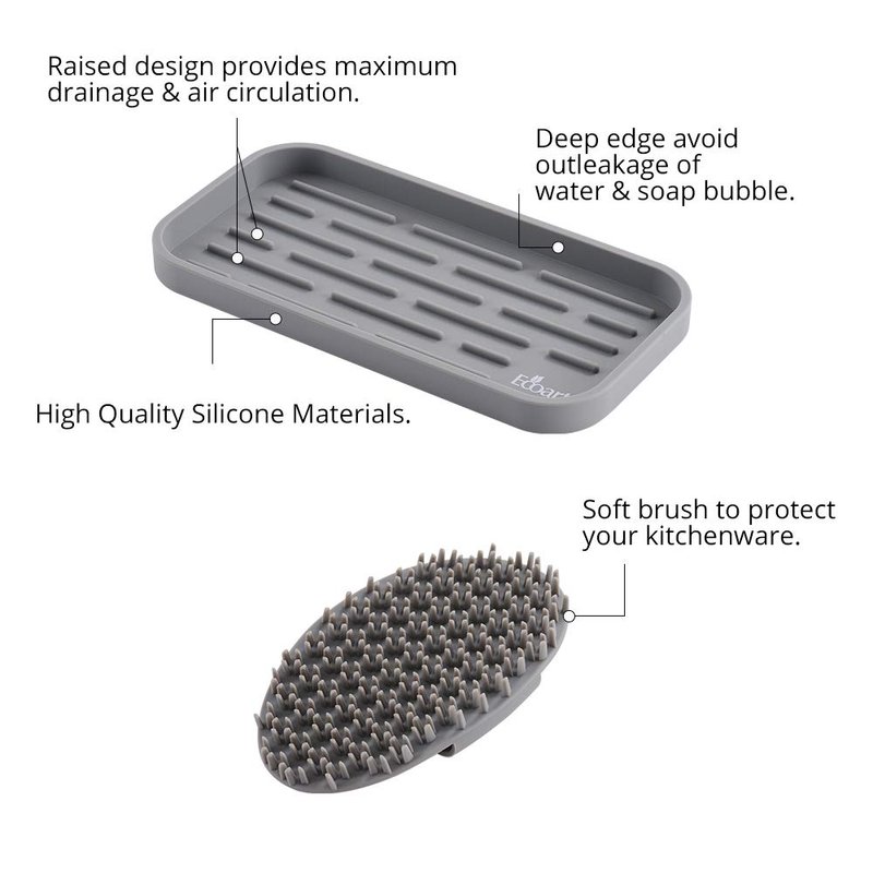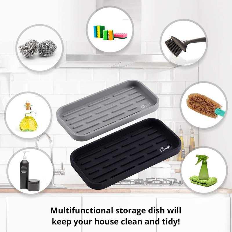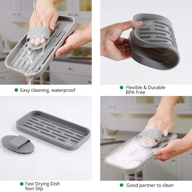- 1.ECOART Silicone Sponge Holder Tray is a multipurpose use organizer.It can gather the sponges, soap, soap dispenser, scrubber,towel and cups in the kitchen or bathroom, keep your house clean and tidy!