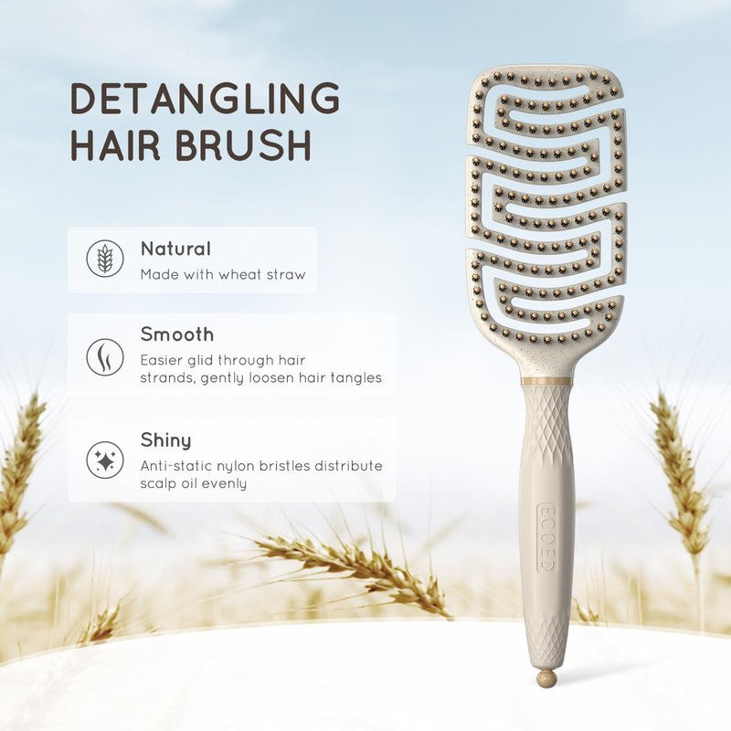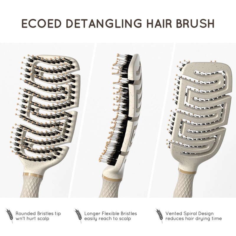 Ecoed Boar Bristle Detangling Brush,Detangling Brush,Detangler Brush for Curly, Thick, and Straight Hair, Dry and Wet Detangling Quickly Detangles and Smooths Hair,Hair Brush for Women and Men