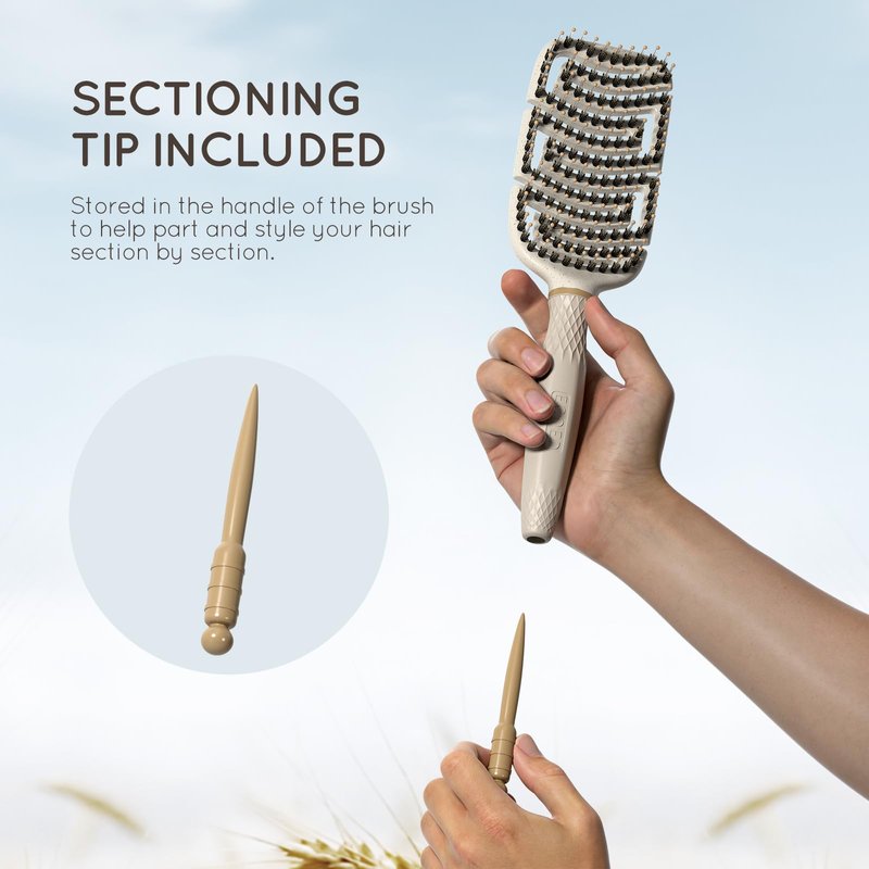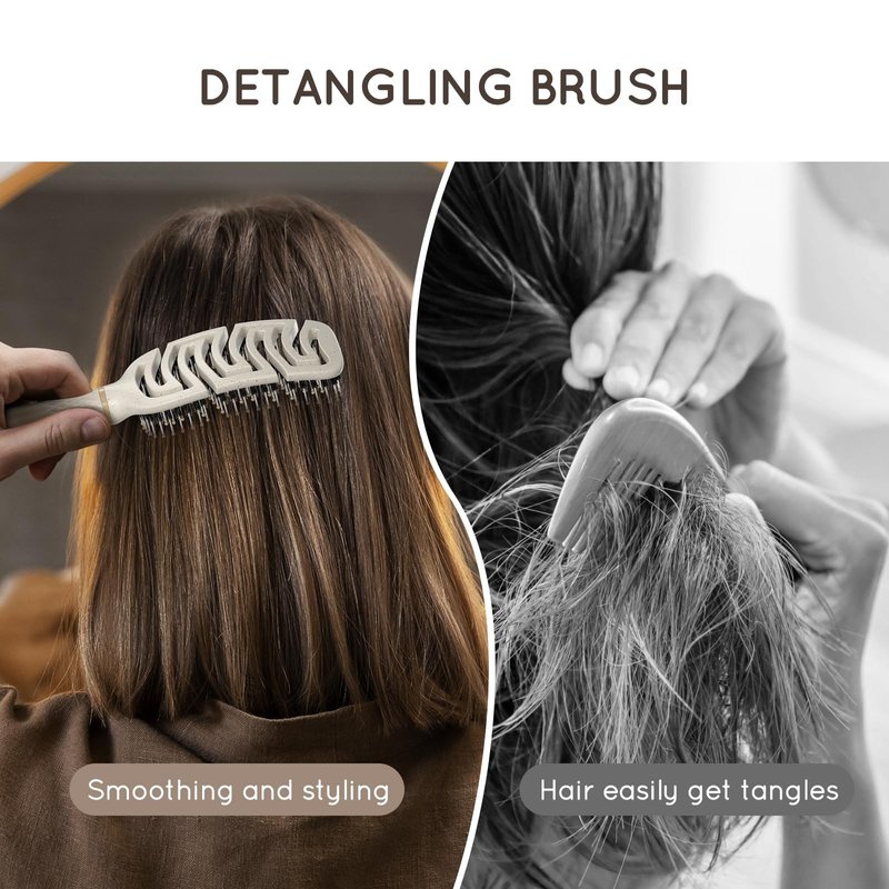 - ——Ordinary bristle brushes force out the knotted hair instead of gently separating it, therefore use a detangling brush with no pulls- Our new flexible bristle brush flexes and bends to remove knots delicately without breaking. The scalp's natural oils are distributed by anti-static nylon bristles for smooth, lustrous, and healthy-looking results.