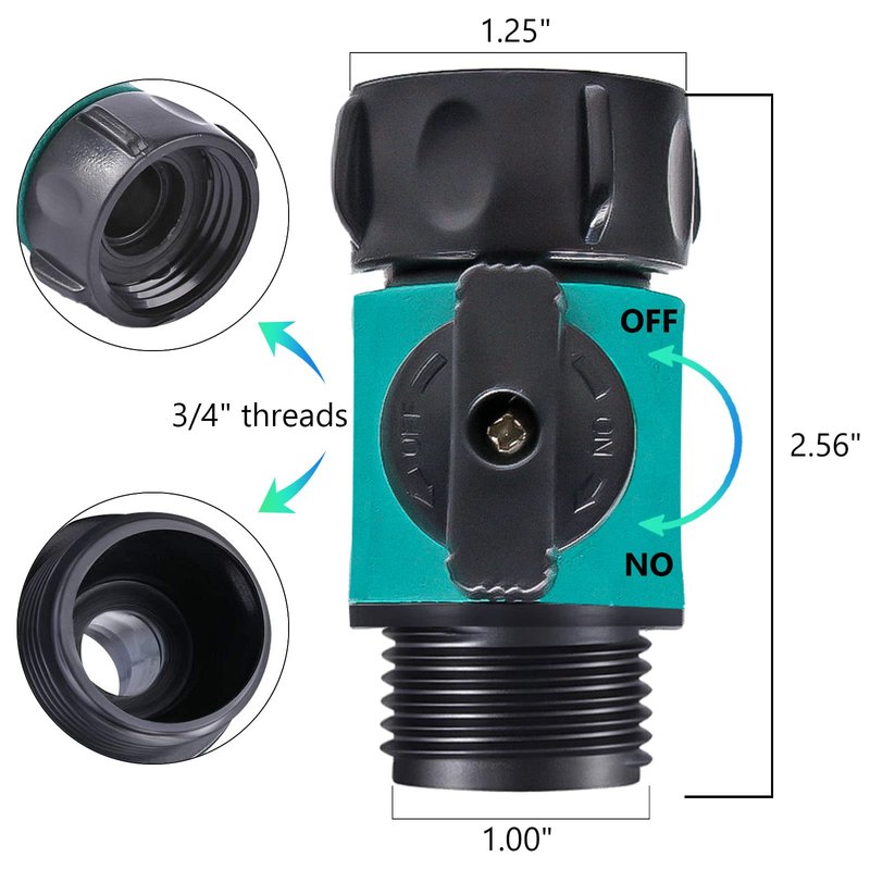 - Smooth Operation: Easy to install this outdoor tap splitter by only rotating the connector. Auto swivel 360° 3/4" thread connector prevents rotation of the whole body to avoid shut off valve stopping in the wrong direction. No extra tools needed. The long valve allow easy and smooth shut on and off.