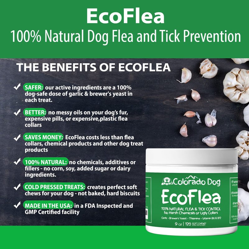 EcoFlea by ColoradoDog - all Natural Chewable Dog Treats for Flea and Tick Treatment and Prevention - 120 Count - no Chemicals, no Mess, no Collars