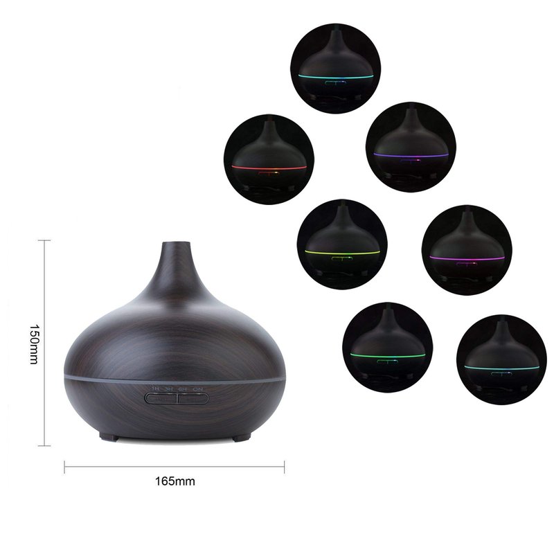 EcoGecko Dark Wood Grain Look Essential Oil Diffuser, Ultrasonic Diffusing Cool Mist Humidifier with Timers for Office Home Bedroom Baby Room Study Yoga Spa, with Timer and 7 Color Night Light