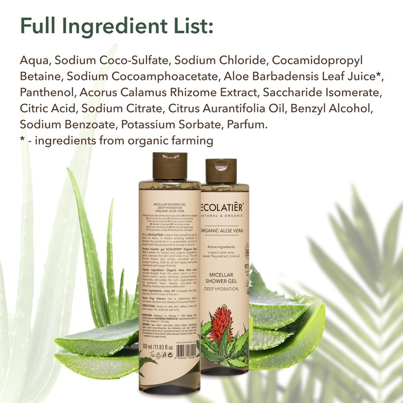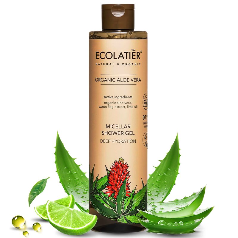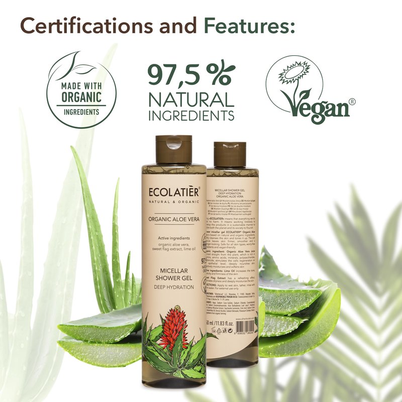 ECOLATIÈR Micellar Shower Gel Deep Hydration with Organic Aloe Vera – 97.5% Natural, Vegan Body Wash for Women & Men, Moisturizing for Sensitive Skin - 11.8 Fl Oz / 350ml