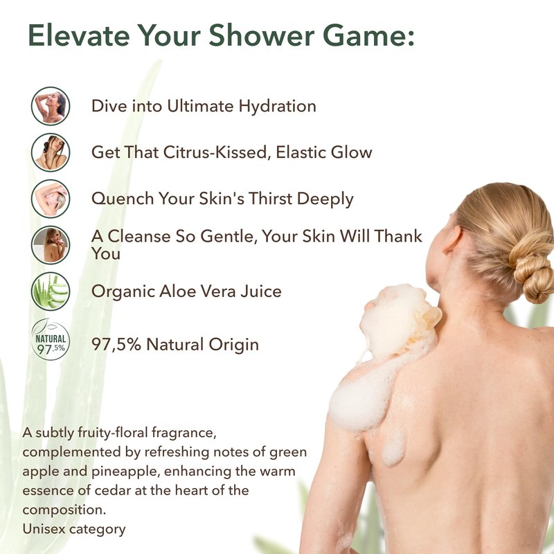 - Micellar shower gel infused with Organic Aloe Vera, providing deep hydration and skin nourishment for body wash women, leaving your skin soft, smooth, and rejuvenated after every wash.