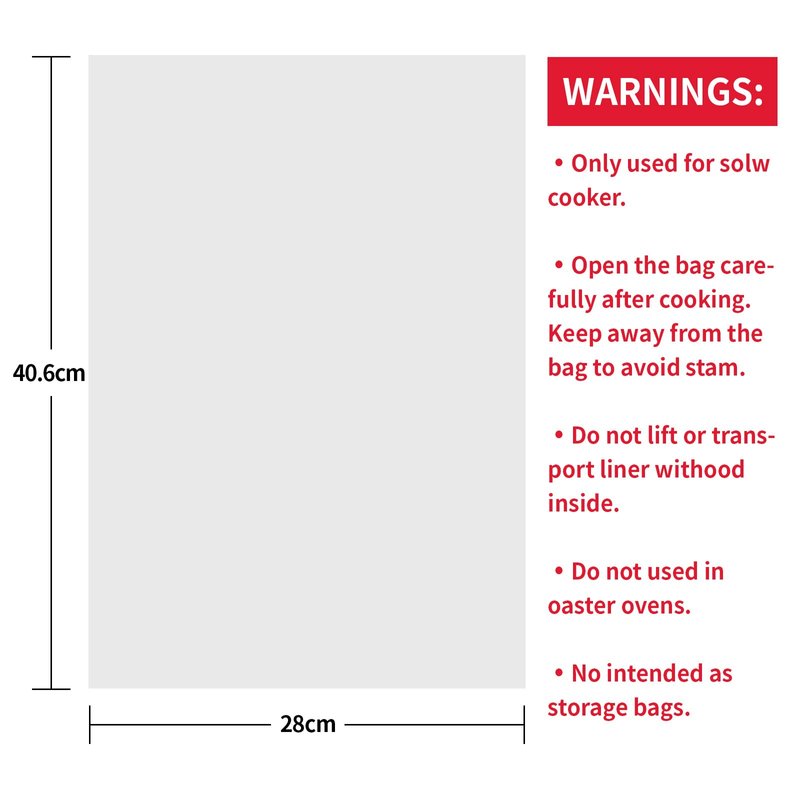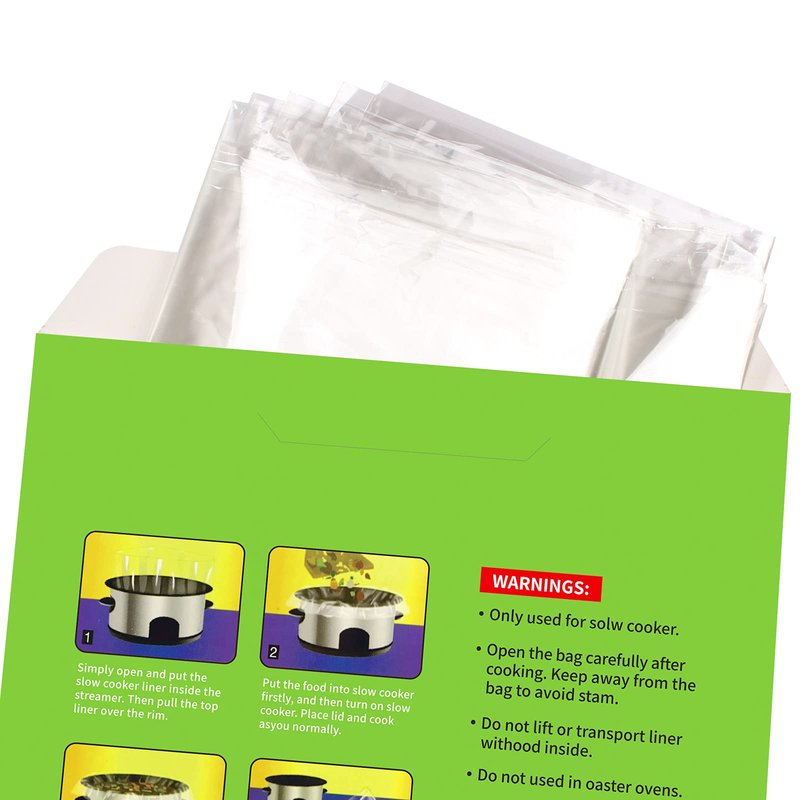 - [Precautions] : Our slow cooker liners is a one-time use product, please be careful not to be cut by sharp objects before use to avoid leakage. You can also use two slow cooker liners at one time to make your meal more enjoyable