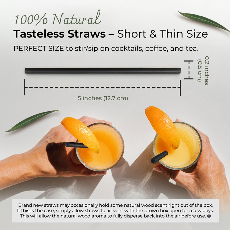 - FOR HOT AND COLD BEVERAGE: Our 5-inch SHORT & THIN bamboo fiber drinking straws work in both cold & hot beverages (-5 to 212°F). Suitable for sipping or stirring hot coffee, ice cold cocktails, milk teas, juices, etc., but NOT for any thick liquids.