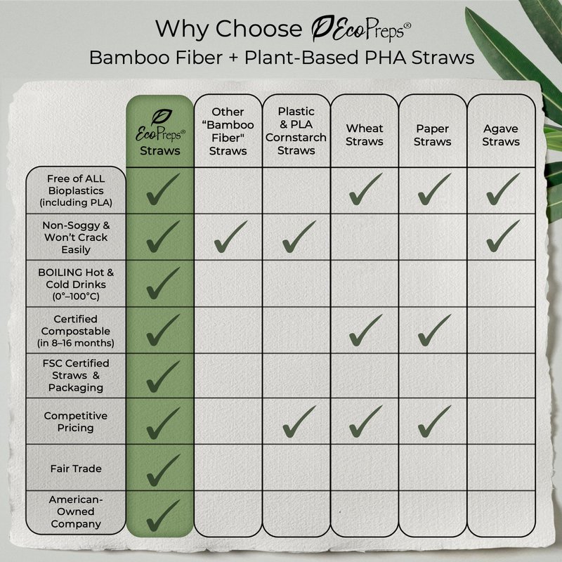 - DURABLE, NON-SOGGY: EcoPreps’ unwrapped plant-based straws can be left in drinks for two weeks without turning soggy or breaking down. They won’t dissolve, add flavor, or crack and peel while drinking – perfect for everyday use and week-long events.