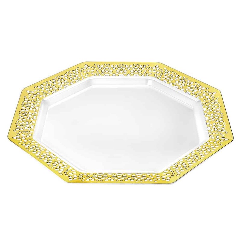 - Chic Gold Finish with Sleek Octagonal Shape for Premium Table Settings – This salad plate features a radiant metallic gold surface paired with a modern octagon design, adding a luxurious and stylish element to any event. Perfect for weddings, bridal showers, formal receptions, and upscale parties where aesthetics are a priority.