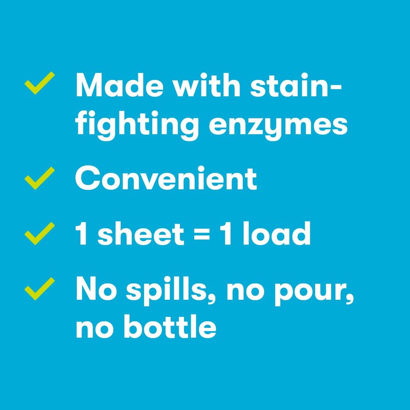 - 1 LAUNDRY SHEET = 1 LOAD OF DETERGENT - Just toss it in and watch as it instantly dissolves in both hot and cold water, fighting dirt and tough stains while leaving your clothes feeling clean, fresh, and residue-free.