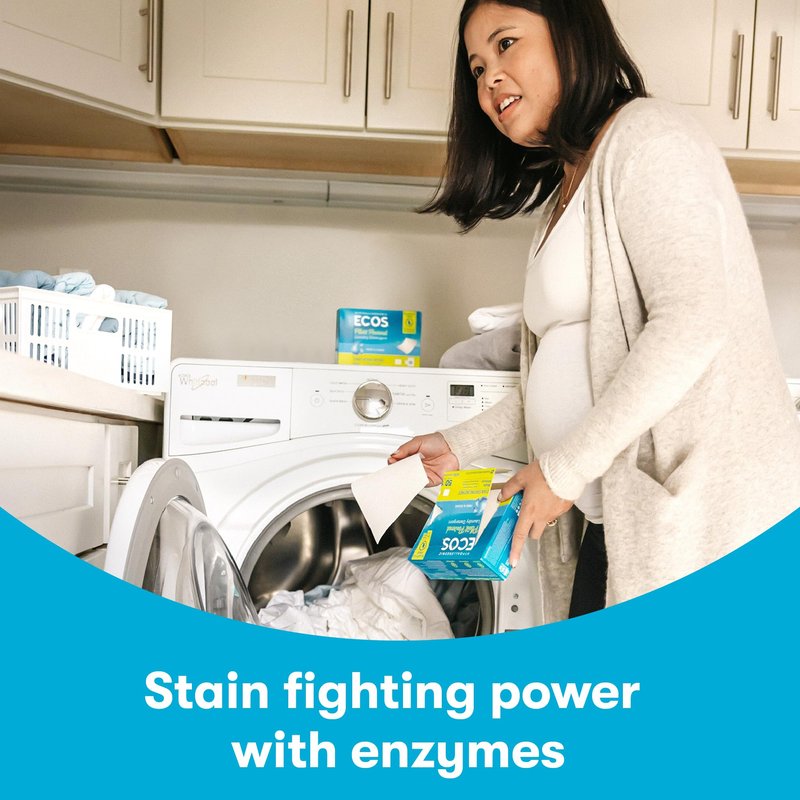 - 1 PACK, PLASTIC FREE PACKAGING & SUSTAINABLE - Our ECOS Laundry Detergent Sheets are 100% plastic-free-packaging making them a sustainable choice for your home. With ECOS dissolvable laundry sheets you can reduce plastic waste with every load.