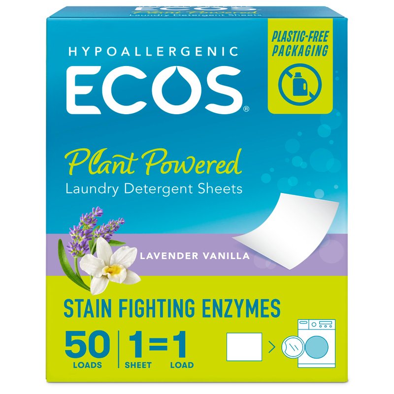 ECOS Laundry Detergent Sheets - No Plastic Jug for 50 Loads - Vegan, No Mess & Liquid Free - Laundry Sheets in Washer - Hypoallergenic, Plant Powered Laundry Detergent Sheets, Lavender, 50 Count