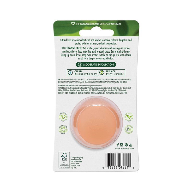 EcoTools Mini Facial Cleansing Brush, Infused with Citrus, Boosts Collagen, Safe for Sensitive Skin, Exfoliates & Clean Pores, Travel Sized, Ecofriendly, Vegan & Cruelty-Free, 2 Count