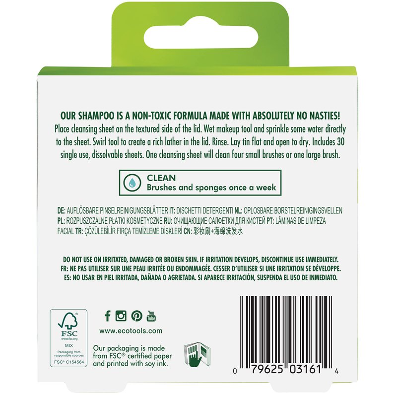 - Includes 30 EcoTools single-use dissolvable sheets to remove surface makeup, oil, and impurities from your brushes to improve performance for smoother makeup application