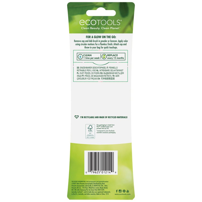 EcoTools Retractable Face Makeup Brush, Kabuki Brush for Foundation, Blush, Bronzer, & Powder, Travel Friendly & Perfect for On The Go, Eco Friendly, Synthetic & Cruelty Free Bristles, 1 Count