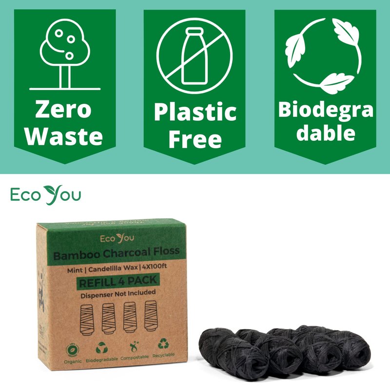 EcoYou Bamboo Dental Floss Refill | 4X99 FT Biodegradable Floss Refill | Mint & Candelilla Wax | Charcoal Dental Floss | Eco Floss | Bamboo Floss Refill | Bamboo Floss | Bamboo Charcoal Floss