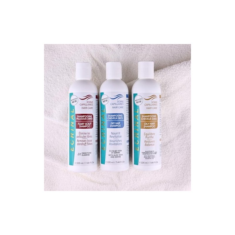 ECRINAL Oily Hair Shampoo 220 ml Revolutionize your hair care routine with our shampoo specially designed for oily hair! Its soft and creamy texture deeply cleanses, purifies, and rebalances the scalp without causing irritation. In just 28 days of use, observe a 36%* reduction in oily hair thanks to the unique combination of lemon essential oil and grapefruit seed extracts, known for their purifying properties. Say goodbye to heavy, greasy hair and welcome soft, light, and supple hair! Give your hair a radiant freshness and revitalizing care with every wash. *Does not prematurely fade hair color. Convincing results based on a study conducted on 22 volunteers with oily hair, using the product for 28 days. Indications Oily hair. Suitable for sensitive scalps. Instructions for use Apply 3 times a week to wet hair and gently massage into the scalp and hair. Rinse thoroughly. Key ingredients Grapefruit Seed Extracts Lemon Essential Oil SULFATE AND PARABEN FREE