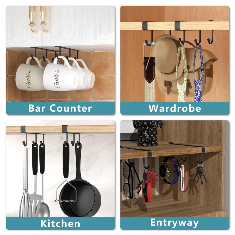 Multi-purpose under cabinet coffee mug holder: This is a multifunctional under cabinet mug holder that can be installed anywhere in the home with cabinets, such as the kitchen, bedroom, bathroom, entrance, and so on.It can be used as mug storage, tea cup holder, or coffee cup organizer.