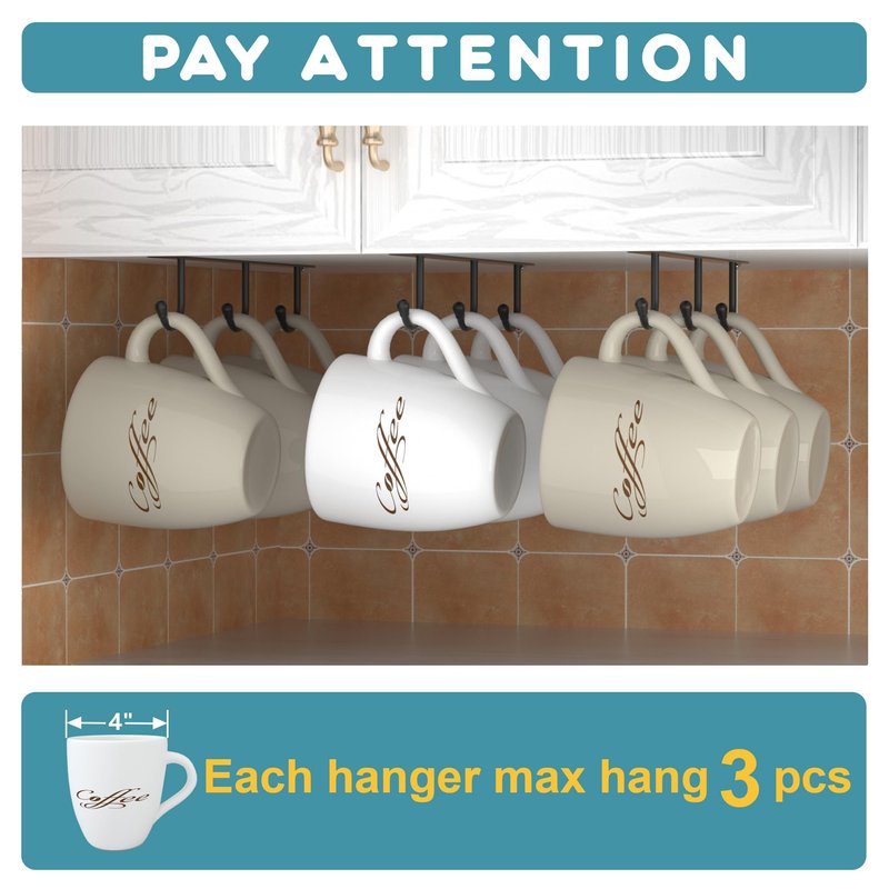 - Sturdy Material: The mug hanger is made of heavy duty iron, anti-rust and not easy to bend. Make sure check the hanger dimension images before place order, the depth of your cabinet must less than 11.8 inch
