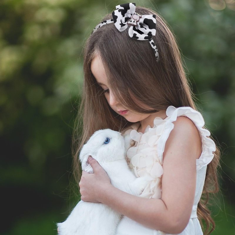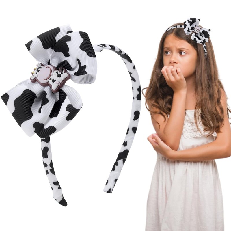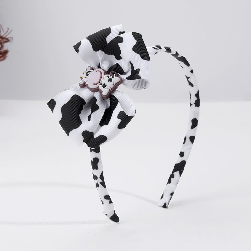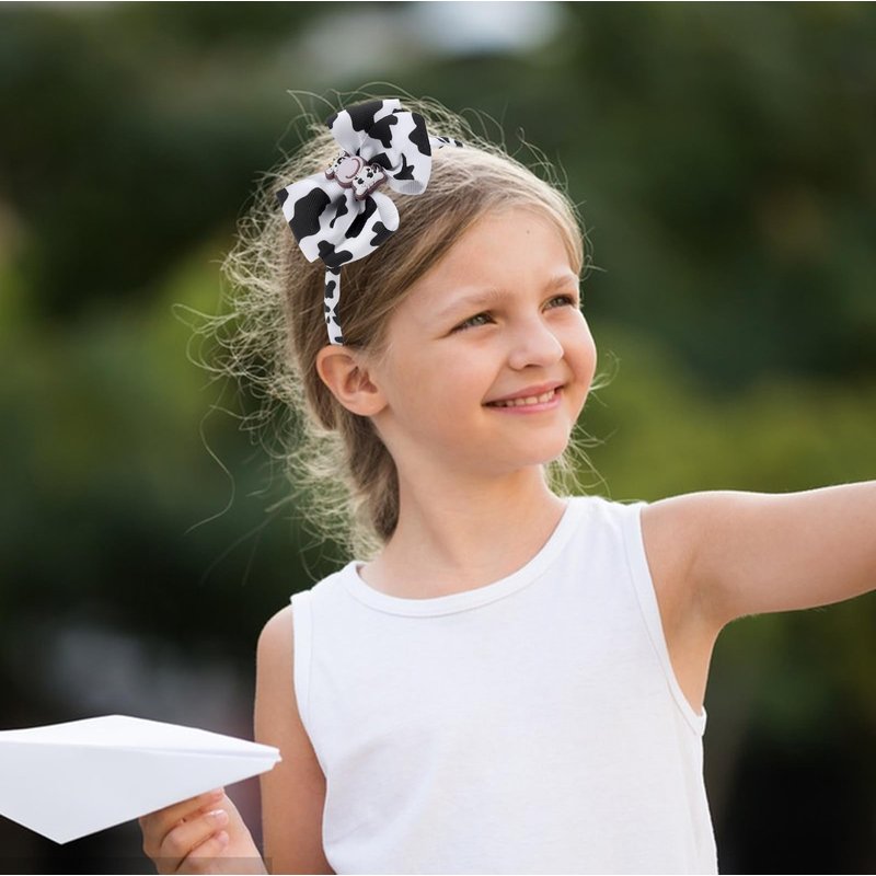 Ecuupas Cow Print Bow Headbands Cute Moo Cow Headband White Black Cow Spot Head Hoop Grosgrain Ribbon Bow Hairband Hair Decoration for Teens Girls Woman 1Pcs