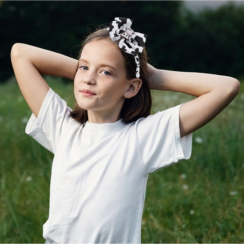 - 𝐂𝐨𝐰 𝐏𝐫𝐢𝐧𝐭 𝐃𝐞𝐬𝐢𝐠𝐧: This headband features a classic bow design, complemented by a fashionable cow print and a cute little cow embellishment, making the headband look very cute and delicate. It is also flexible and easy to use, stable and fixed all day long, adding fashionable charm to your style.