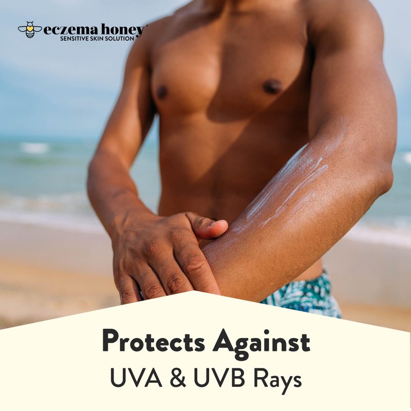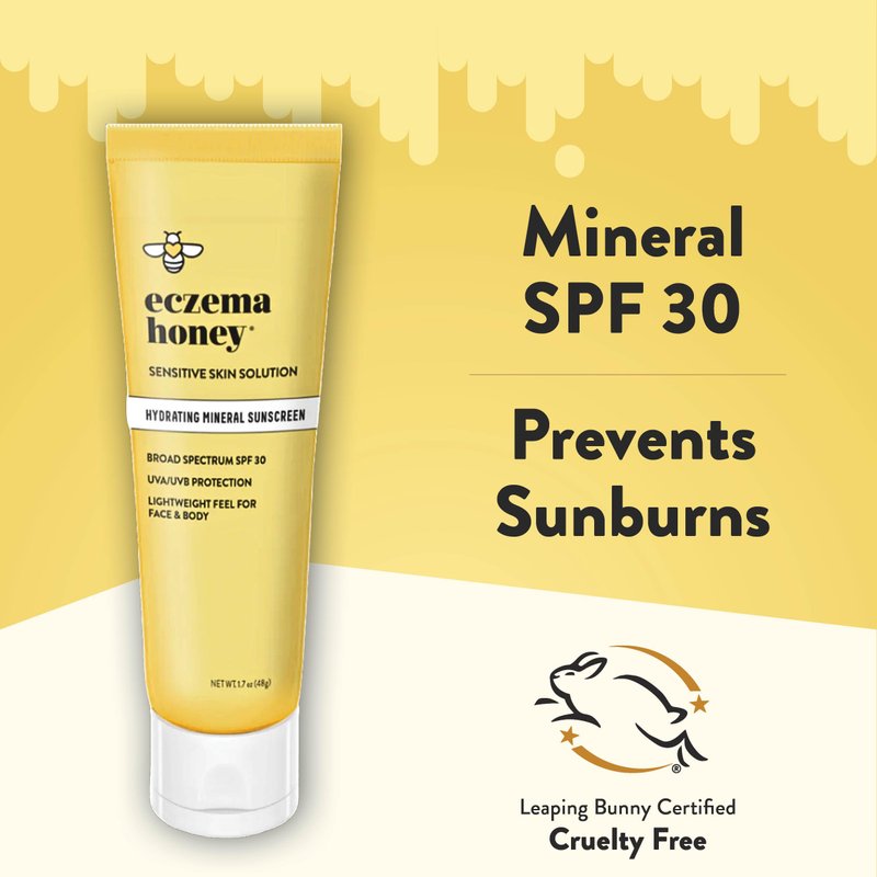 - Gentle Sun Skin Care – Eczema Honey's Broad spectrum SPF 30 Hydrating Mineral Sunscreen provides soothing sun protection for people with eczema and sensitive skin
