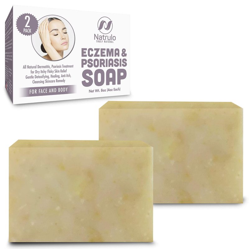 Eczema Soap Bar for Face and Body – All Natural Dermatitis, Psoriasis Solution for Dry Itchy Flaky Skin Relief – Gentle Detoxifying, Anti-Itch, Cleansing Skincare Remedy – Eczema Soap Bar Made in USA