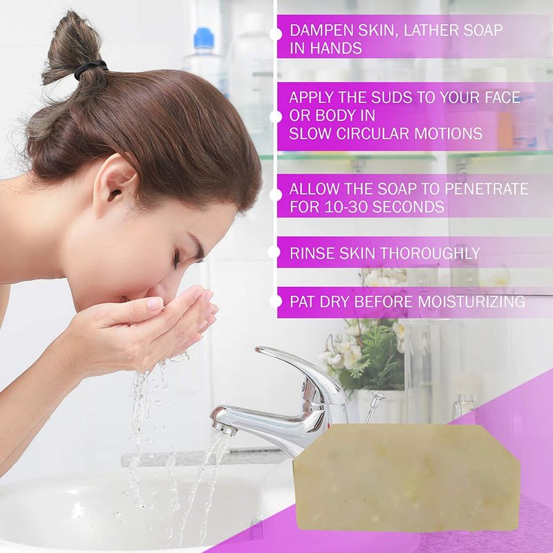 - EASY TO USE: Dampen skin, lather soap in hands and apply the suds to your face or body in slow circular motions. Allow the soap to penetrate for 10-30 seconds. Rinse skin thoroughly and pat dry before moisturizing.