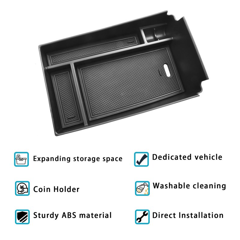 - Extra Space: Compatible with the original vehicle tray. Adds an extra layer of storage, you can hold some smaller items on top, and there is also space underneath it to put larger things that you don't need very often.