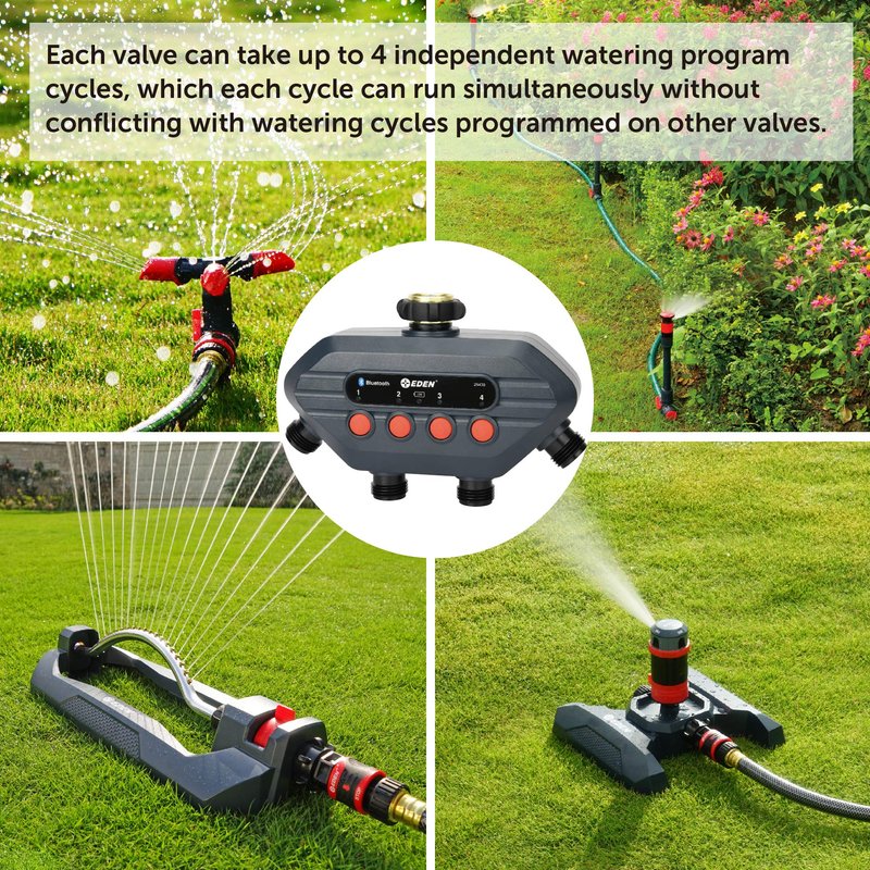 - Our 4-zone independent programming allows you to personalize your watering needs.
